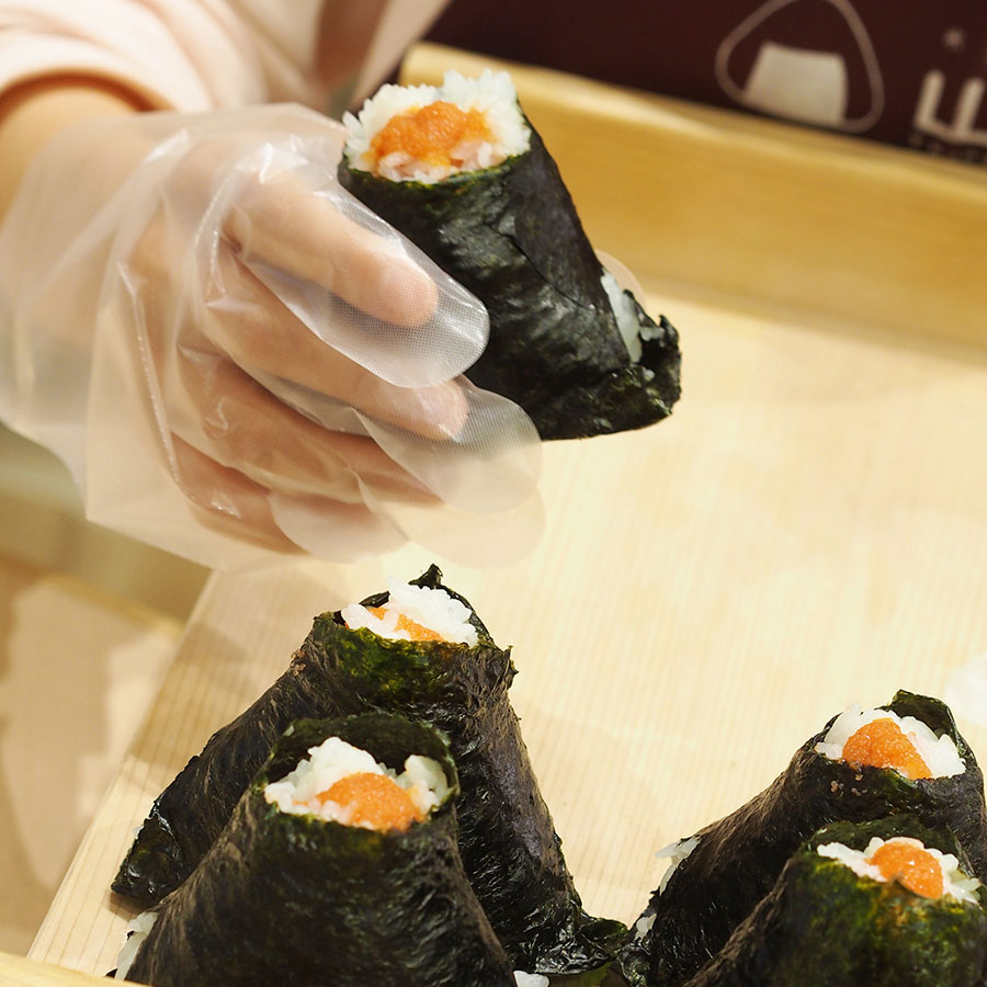 おにぎりに直まきなので、とろけてしまわない、しっかりしているもの、色、香りを吟味して選んでいます。