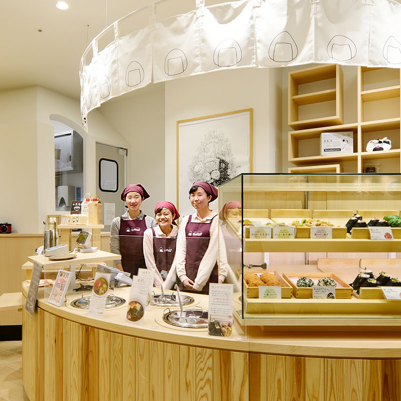 おにぎりをおいしく食べていただき、ちょっと元気になっていただくには、まずスタッフが元気でないとはじまらない。まず私たちが元気であることが一番大切だ。無理せず働ける環境、活気あふれる職場で、元気にお客様に接する。おにぎりが元気の源になるよう、心を込めて握っている。