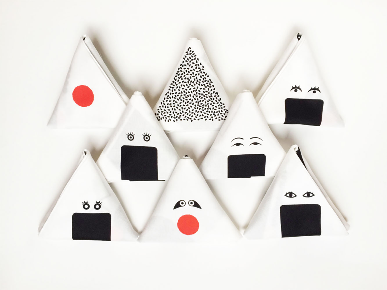 通い袋第2弾は風呂敷。コチャエさんの作る、風呂敷を見ていたらおにぎりに見えてきたので、さっそく会いに行く。完成した風呂敷は包んでもたたんでもおにぎりでした。Yamadamura+SHOP