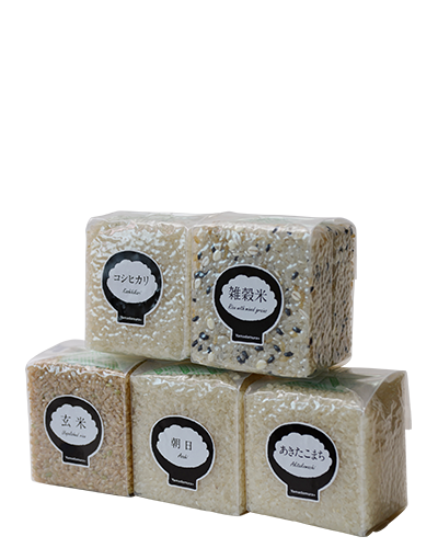 お米マイスターが厳選した、岡山の白米、玄米、雑穀米の詰め合わせ。白米:美咲町のあきたこまち、玄米:赤磐の朝日、雑穀米:白米・発芽玄米・押麦・黒米。