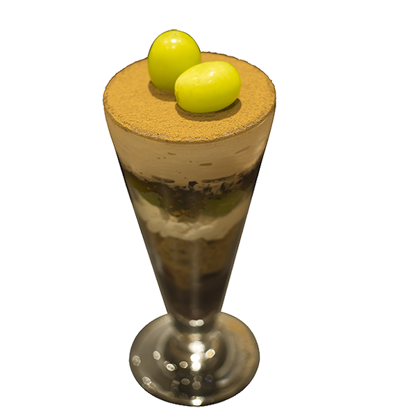「季節のほうじ茶パフェ」秋はシャインマスカットです。