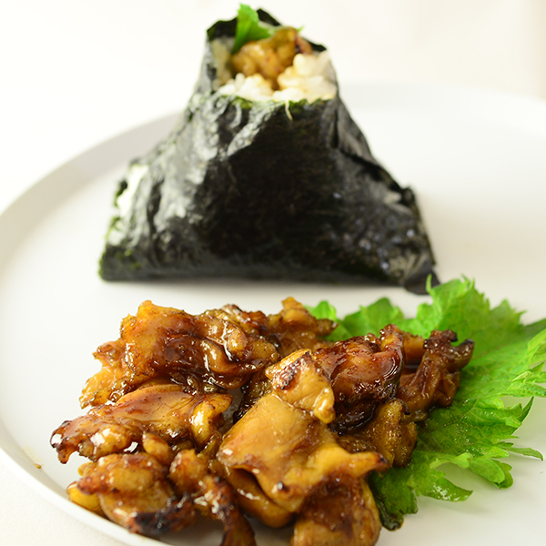 炭火焼の鶏はらみに甘辛いタレを絡ませました。炭の香ばしい匂いと希少部位である鶏のはらみのこりこりとした食感が癖になります。