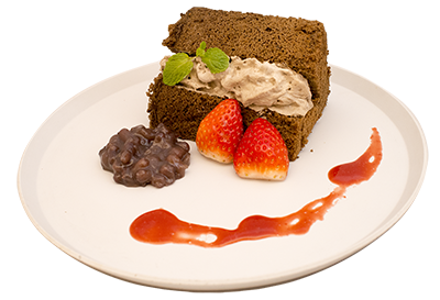 下山さんちのほうじ番茶でオリジナルシフォンケーキを焼き上げました。クリームもほうじ茶味です。